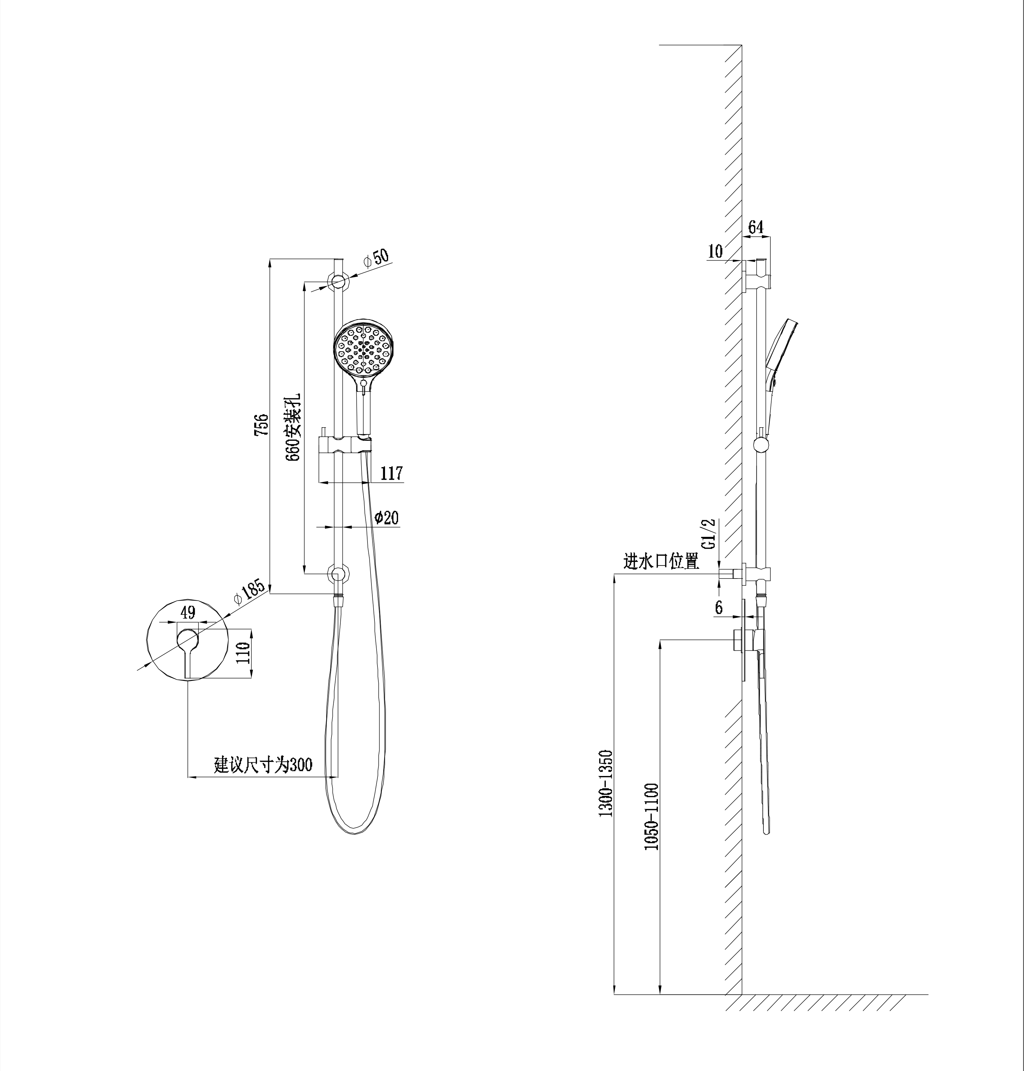 静享沐浴慢时光 SPA微珠水 深入毛孔,按摩肌肤 暗装入墙 简洁大气,释放空间 自由安装 安装无高度限制 二合一升降杆 兼具美学与实用